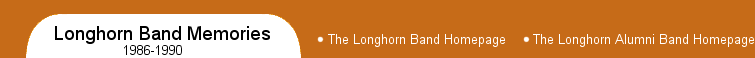 Welcome to my Longhorn Band memories page. Recently I found my old longhorn band audio tapes (circa 1986-1990) as I was cleaning my study. I thought that it would be prudent to convert these tapes to a digital format lest they be lost forever. In some places, some minor sound defects can be heard; however, the music is intact for the most part. I hope that you enjoy sharing these memories!